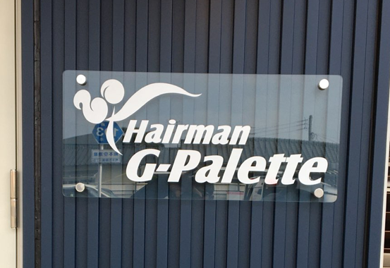 アクリル板にカッティング文字仕上げ アクリル板は壁から20mm浮いた状態で取り付けています。