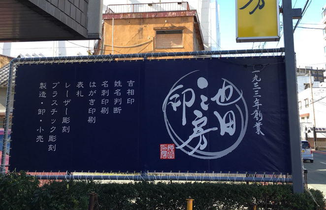 テントにカッティング文字。テントも立派な広告面として利用できます。